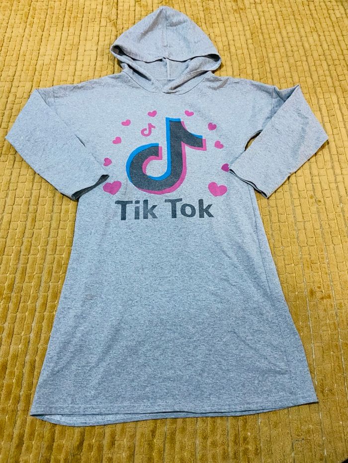 🌺Robe de nuit 🌺Tiktok 🌺Couleur gris 🌺Taille 12 ans 🌺En bon état petite tache au niveaux de la capuche voir photos