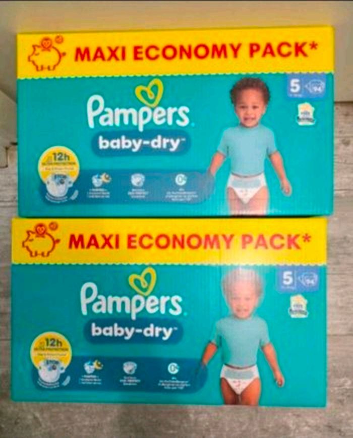 🍼 Pampers Baby-Dry T5 Lot de 2 × 94 couches (11–16 kg) Couches Pampers Baby-Dry conçues pour le confort et la protection au quotidien 👶✨ Taille 5, parfaitement adaptées aux enfants de 11 à 16 kg. Lot pratique de 188 couches. 🧸 Caractéristiques : 🔹 Marque : Pampers 🔹 Gamme : Baby-Dry 🔹 Taille : 5 (11–16 kg) 🔹 Quantité : 2 × 94 couches (188 total) ✅ État : Produit jamais ouvert 📦 Envoi rapide et très soigné, comme toujours.