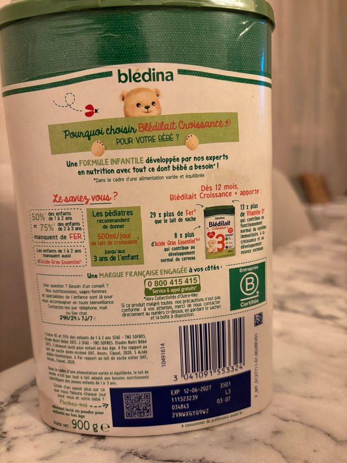 1 boîtes de lait de croissance (3ᵉ âge) à vendre. Le lait est neuf, boîtes fermées et parfaitement conservées. Convient aux bébés de 12 à 36 mois. Date de péremption : 12/06/2027.