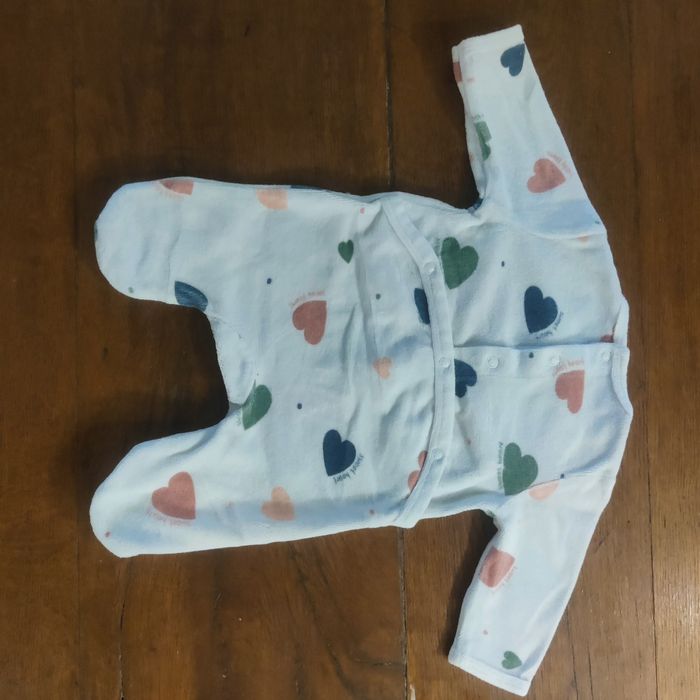 Pyjama en velours avec ouverture dos, motif coeur. Taille 1 mois. Pressions ok Maison non fumeur Délais d'envoi