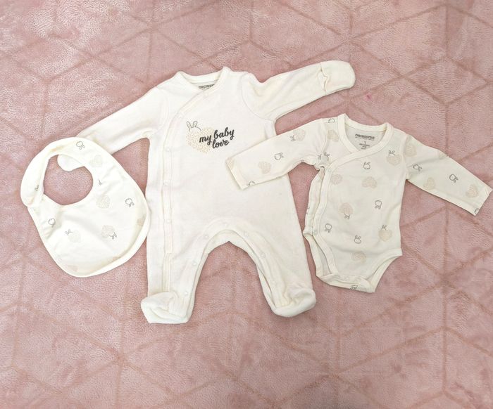 Pyjama avec son body et son bavoir mixte en taille 1 moi Comme neuf porté 1 fois
