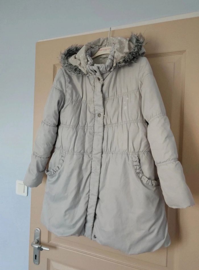 Manteau d'hiver taille 12 ans Marque Jodhpur Capuche amovible par fermeture éclair Fausse fourrure 2 poches Longueur totale 75 cm Encore en bon, voire très bon état Couleur : Gris clair. Peut-être le bas des manches un peu terni? 🤷🏼‍♀️. Voir photo