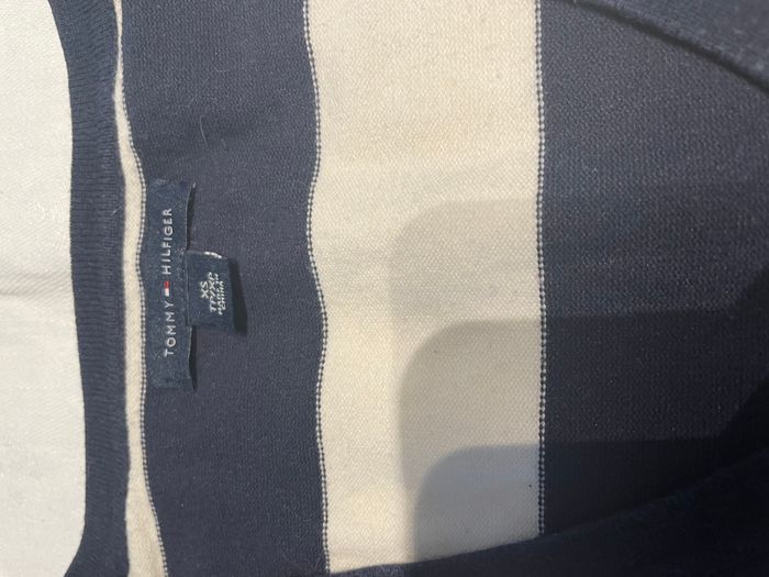 PULL BLEU BLANC COL V FEMME TOMMY HILFIGER  XS - photo numéro 2