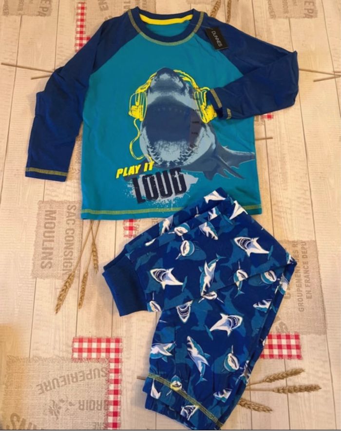 Pyjama garçon 2 pièces Motif requin Taille 5-6 ans Bleu Neuf avec étiquette 📦 EXPEDITION RAPIDE 📦