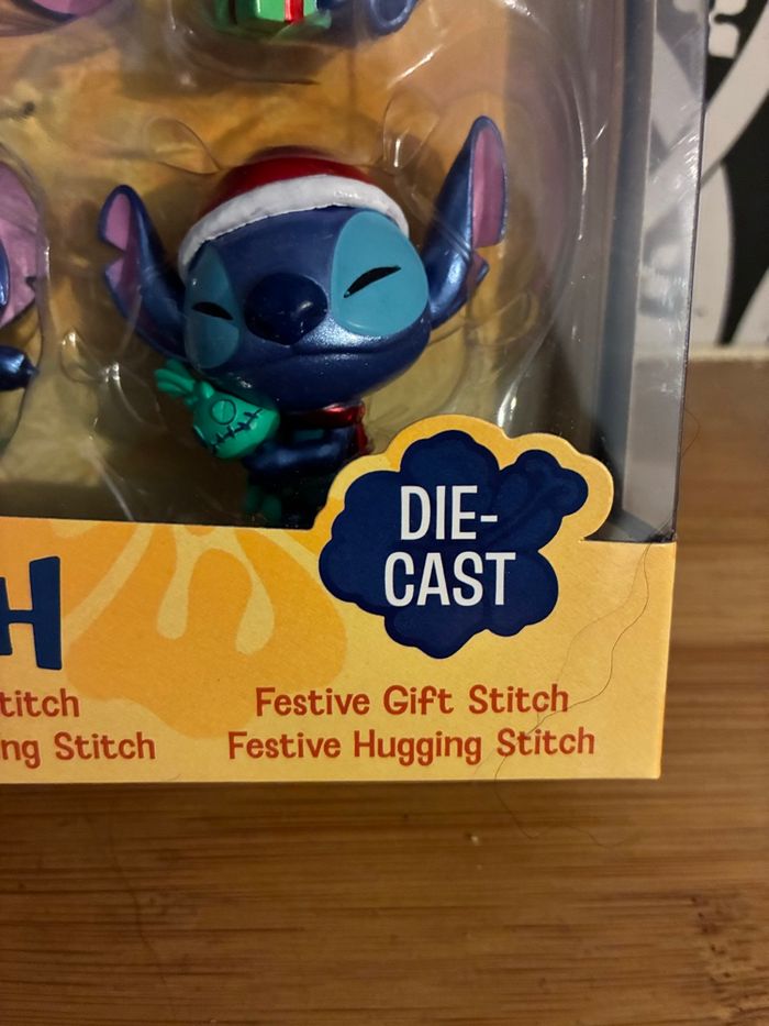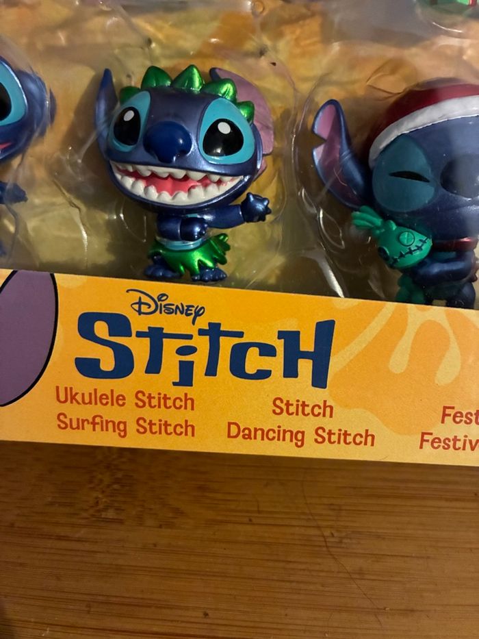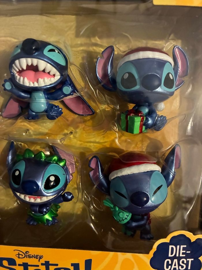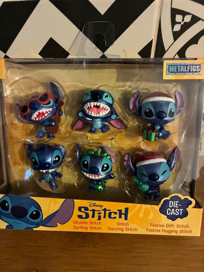 Coffret figurines métal 6cm Stitch À collectionner - pour collection Plongez dans l’univers attachant de Stitch avec notre coffret exclusif de 6 figurines (dont deux sur le thème de Noël avec stitch et son bonnet pere noel et cadeau) en métal de 6 cm ! Chaque figurine représente Stitch dans des versions différentes, toutes plus craquantes les unes que les autres. Que vous soyez collectionneur, fan de Disney ou simplement à la recherche d’un cadeau original, ce coffret saura vous séduire. Conçu pour les enfants à partir de 8 ans, mais aussi pour les adultes qui ont gardé leur âme d’enfant, ce trio de figurines est une véritable invitation à adopter le personnage le plus mignon de l’univers Disney. Avec ses expressions espiègles et son look irrésistible, Stitch apportera une touche de fantaisie et de tendresse à votre collection ou à votre décoration. N’attendez plus pour accueillir Stitch chez vous ! Ce coffret est une idée cadeau parfaite pour faire plaisir ou se faire plaisir.