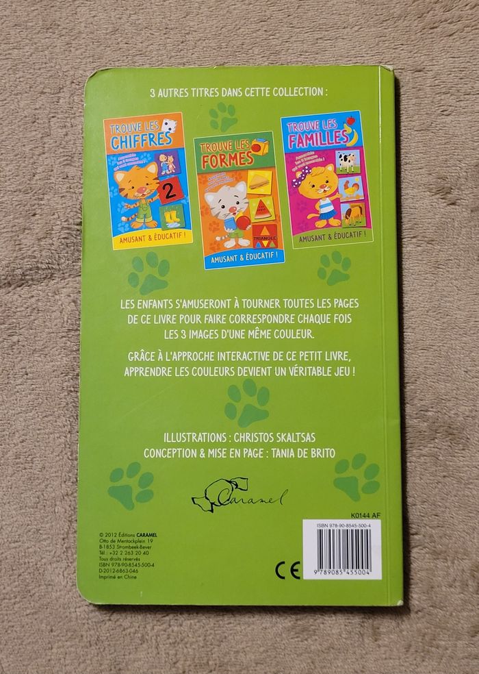 Bonjour, Je vends ce livre nommé - Trouve les couleurs Tania De Brito - en bon état. Si vous rechercher un livre ou un acteur en particulier et pour gagner du temps, n'hésitez pas à me le demander, je vous répondrais dès que possible 😇 Veuillez vous abonner pour recevoir toutes les nouveautés Pour autres infos n'hésitez pas à me contacter. ***** Merci de votre visite *****