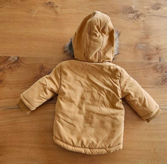 Blouson chaud bébé garçon marron. Intérieur à carreaux de différentes couleurs. Ouverture zippée et boutonnée sur le devant. Ouverture boutonnée des poches sur le devant. Jamais porté donc neuf. Aucune tâche, ni trou 👌