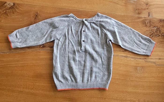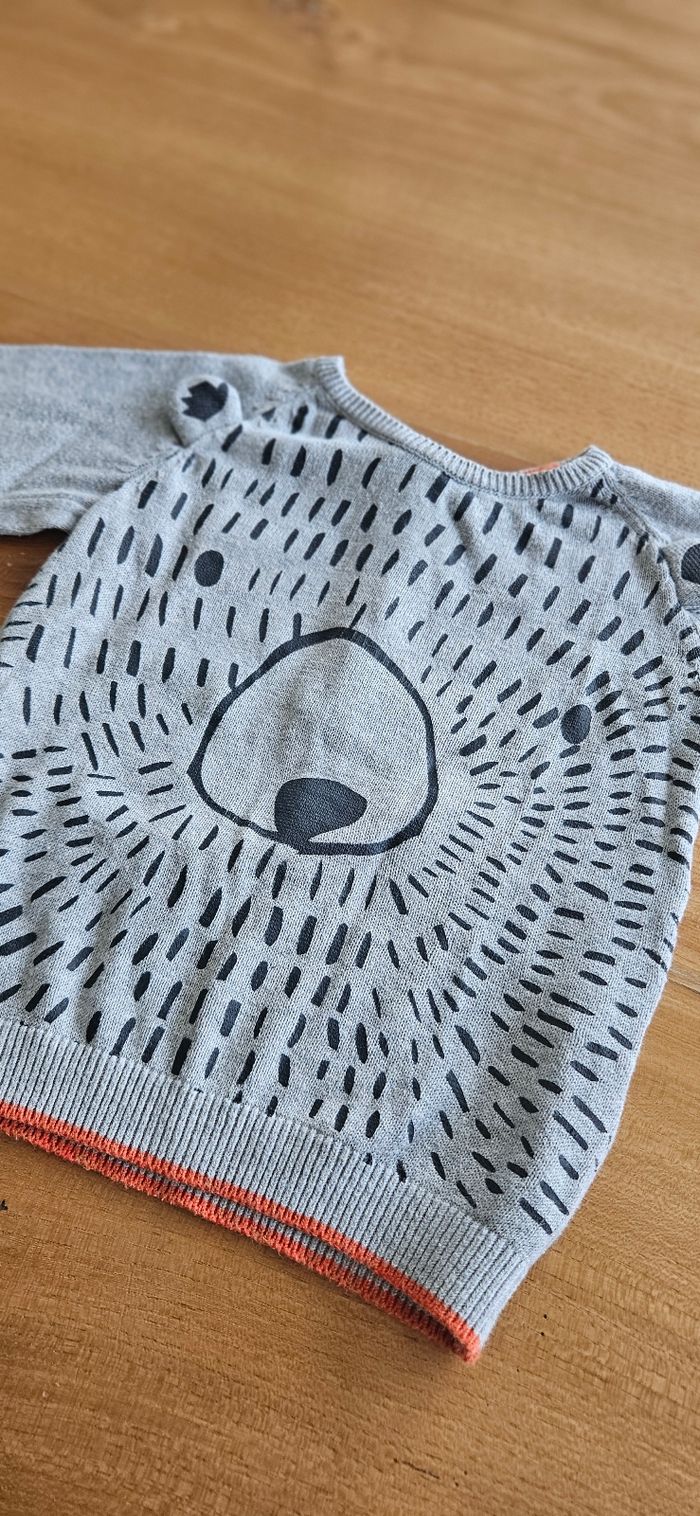 Pull fin gris, garçon. Dessin d'un ours imprimé sur le devant. Porté mais reste en très bon état. Aucune tâche, ni trou 👌