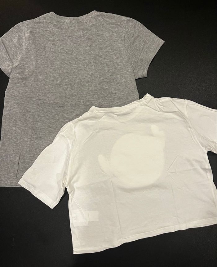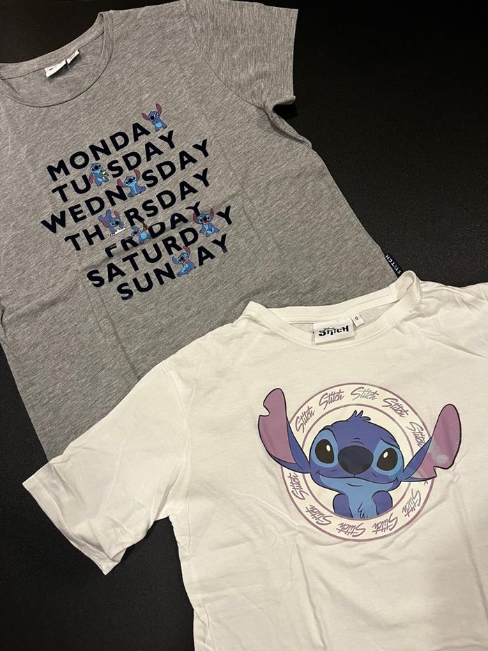 deux T-shirts Stitch pour femme : 👕 Blanc, taille S – petit défaut sur l’impression (voir photo) 👕 Gris, taille 40 – taille plutôt équivalente à un M 💰 3€ pièce ou 5€ les deux ✅ Bon état général 📦 Envoi rapide avec mondial relais