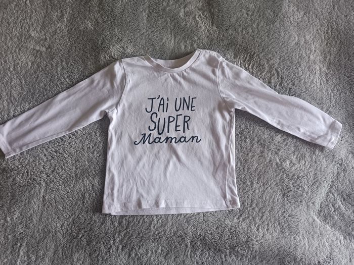 Adorable t-shirt bébé, parfait pour une petite touche d’amour et d’humour 💕 Idéal au quotidien ou comme idée cadeau. 📌 Marque : Gémo 📌 Taille : 24 mois 📌 Type : T-shirt manches longues 📌 Couleur : blanc 📌 Motif : inscription « J’ai une super maman » 📌 État : très bon état ➡️ Matière douce et confortable ➡️ Manches longues, idéal mi-saison / hiver ➡️ Message craquant, facile à assortir 👉 Envoi rapide 📦 👉 Dressing bébé à petit prix ✨