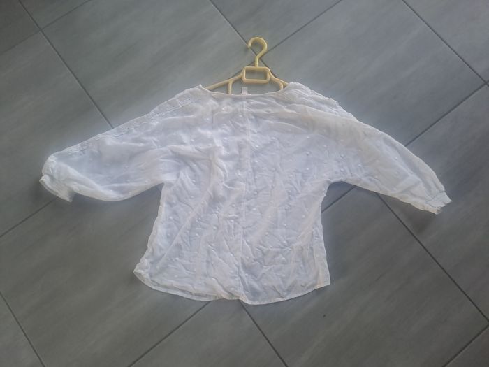 Blouse légère et fluide Manches 3/4 Couleur blanche transparence avec relief Attache avec boutons au décolleté Effet broderie sur les manches Taille 36 Marque Esprit
