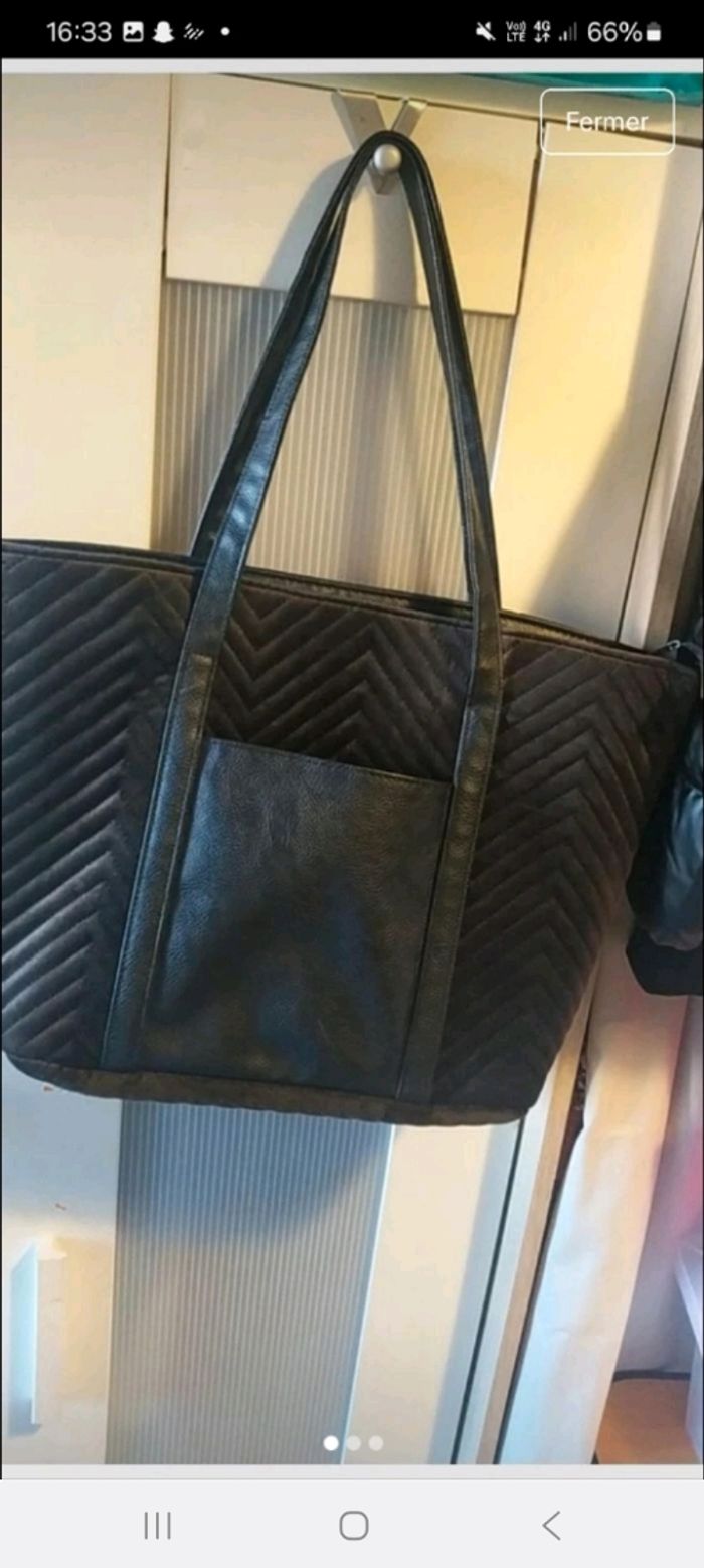 Prix ferme Neuf Sac cabas bi matière velours et simili Couleur marron et noir
