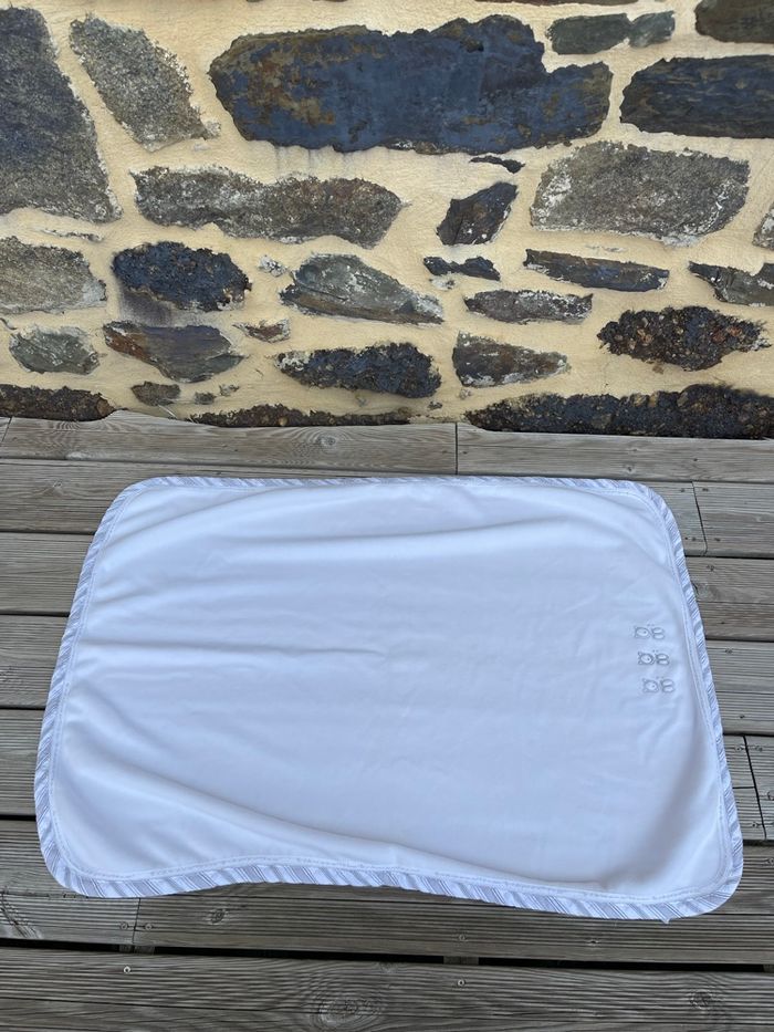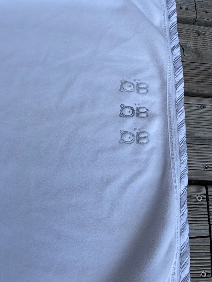 Couverture plaid pour bebe Blanche avec contour gris Très bonne état Obaïbi
