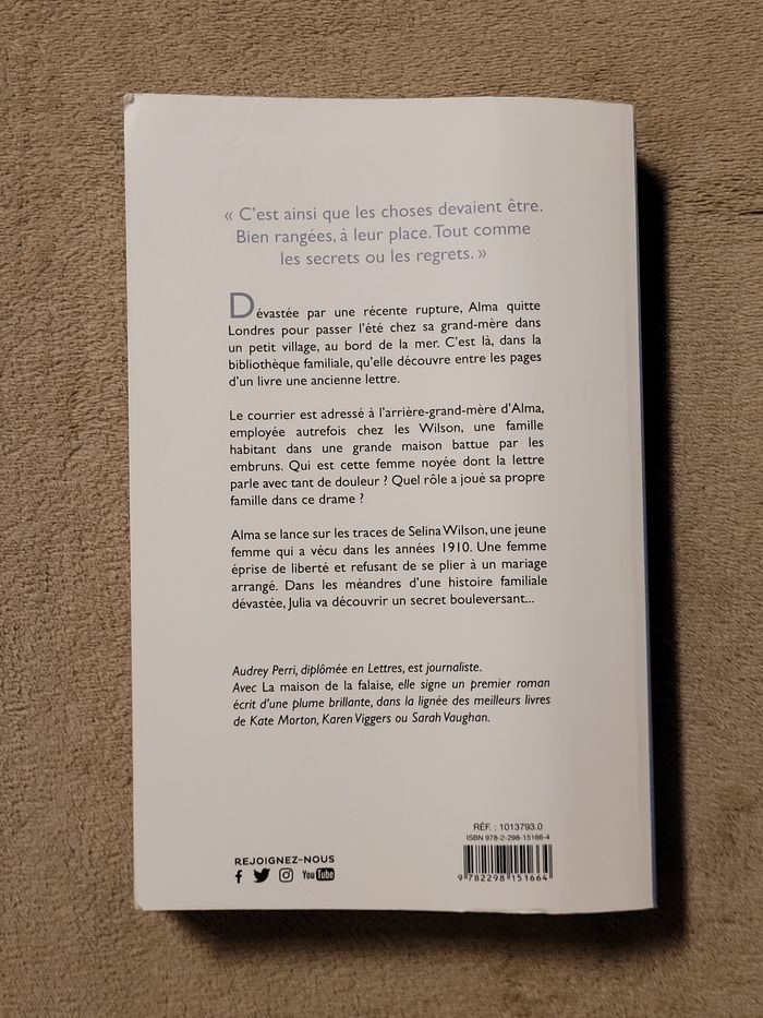 Bonjour, Je vends ce livre nommé - La Maison De La Falaise Audrey Perri - en très bon état. Si vous rechercher un livre ou un acteur en particulier et pour gagner du temps, n'hésitez pas à me le demander, je vous répondrais dès que possible 😇 Veuillez vous abonner pour recevoir toutes les nouveautés Pour autres infos n'hésitez pas à me contacter. ***** Merci de votre visite *****