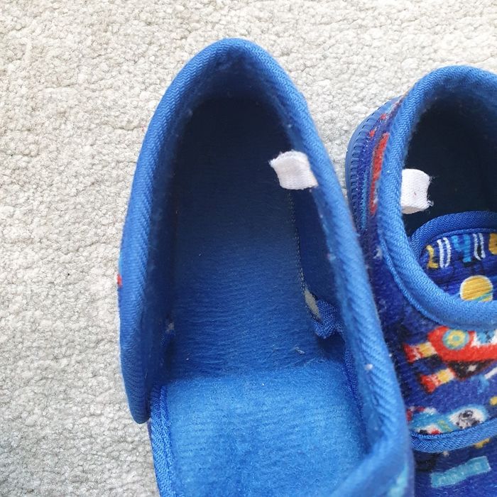 Je vends cette paire de chaussons garçon bleu taille 23. Seul défaut ( voir photo) Maison non fumeur et sans animaux. N'hésitez pas à me contacter pour plus d'informations !