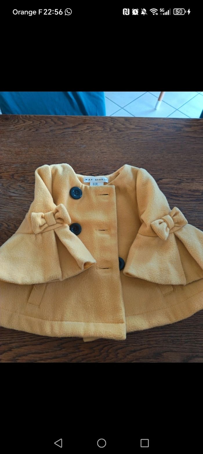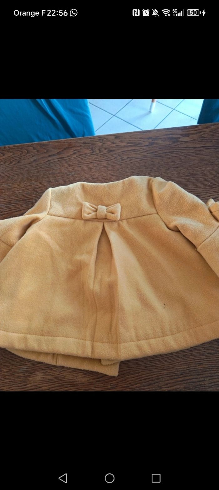 Magnifique caban jaune moutarde avec des manches amples et des noeuds
