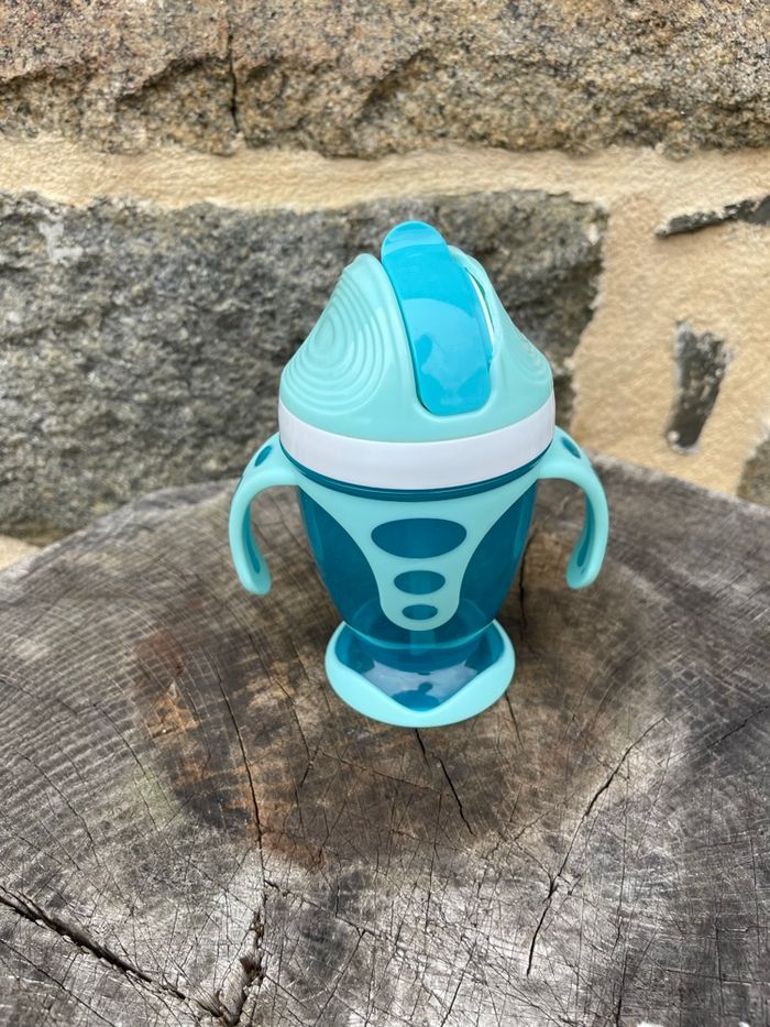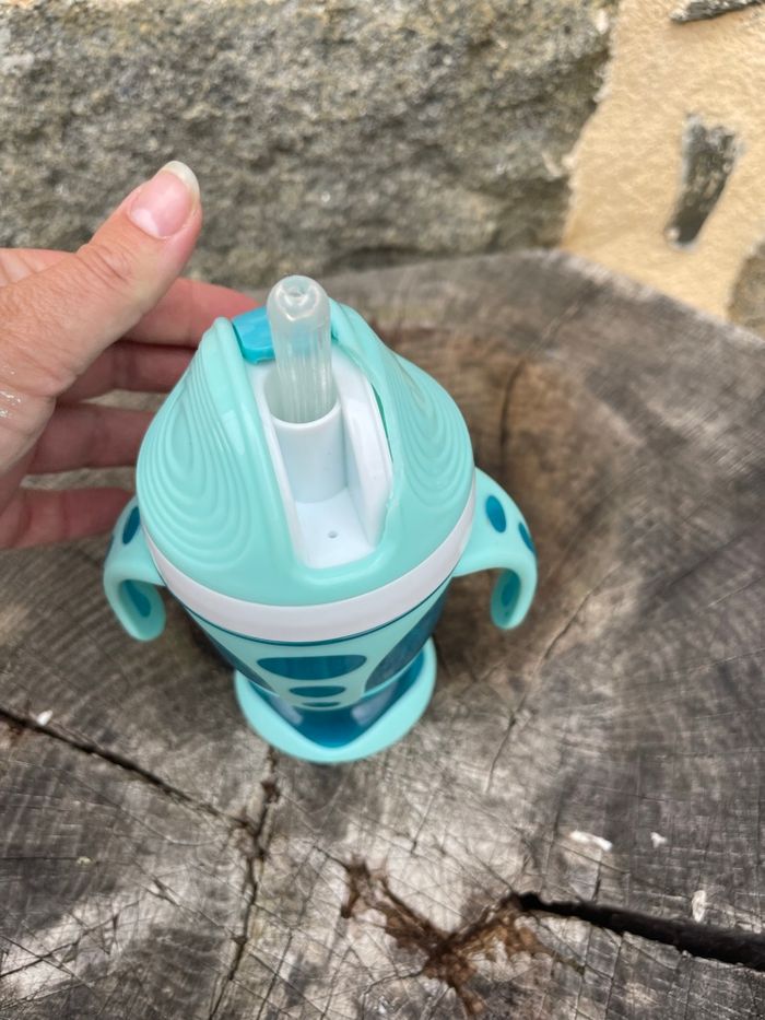 Tasse anti fuite bleue turquoise avec paille silicone Très bonne état
