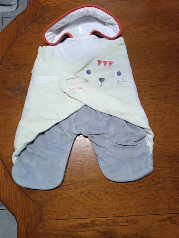 Nid d'ange Gris-vert Sucre d'orge 1er âge. Coton, polyester. Comme neuf. TBE