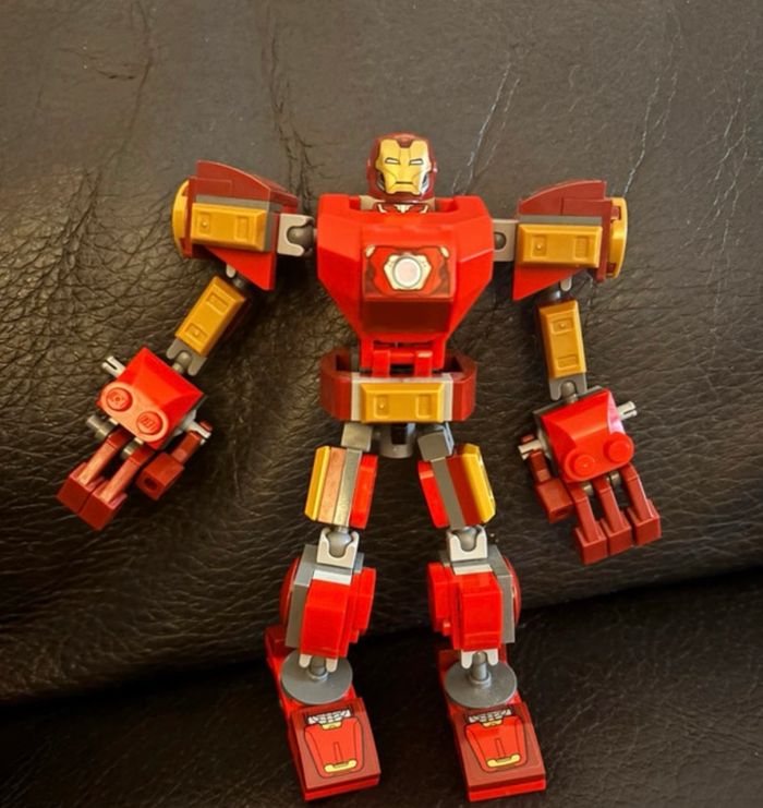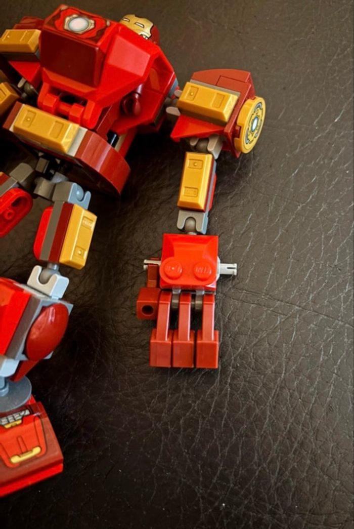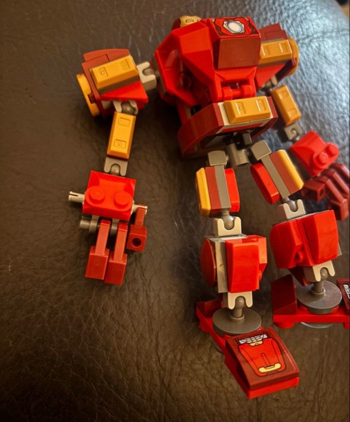 vends ce set LEGO Marvel Super Heroes (référence 76203) comprenant l'armure articulée et sa figurine exclusive d'Iron Man. Détails de l'état : Figurine: En excellent état, armure et casque impeccables (voir photos). C'est la version exclusive à ce set. Robot (Mech) : Globalement complet et fonctionnel pour le jeu ou l'exposition. Pièces manquantes signalées : Il manque 3 petites pièces au niveau des doigts (facilement remplaçables avec un vrac LEGO) et l'accessoire de tir bleu. Vendu en l'état, exactement comme sur les photos. Idéal pour compléter une collection Marvel ou pour offrir