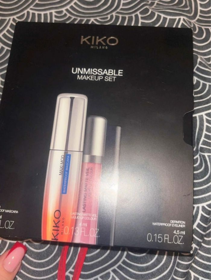 KIKO Milano - Unmissable Makeup Set (pink & black) Le coffret essentiel pour un look chic et intense : mascara volumisant, eye-liner précis et rouge à lèvres liquide mat. Des formules longue tenue dans un écrin élégant — parfait à offrir ou pour se faire plaisir Valeur de base : 30 euros Je le met en vente à 15 €