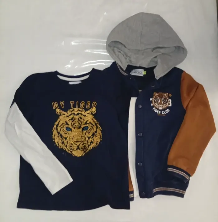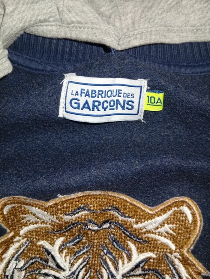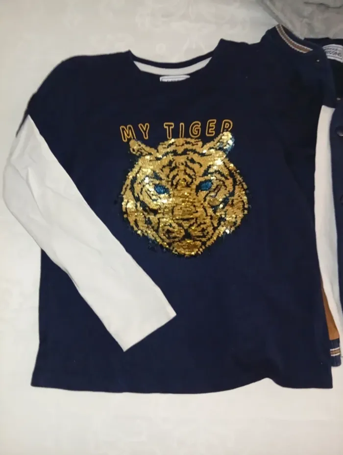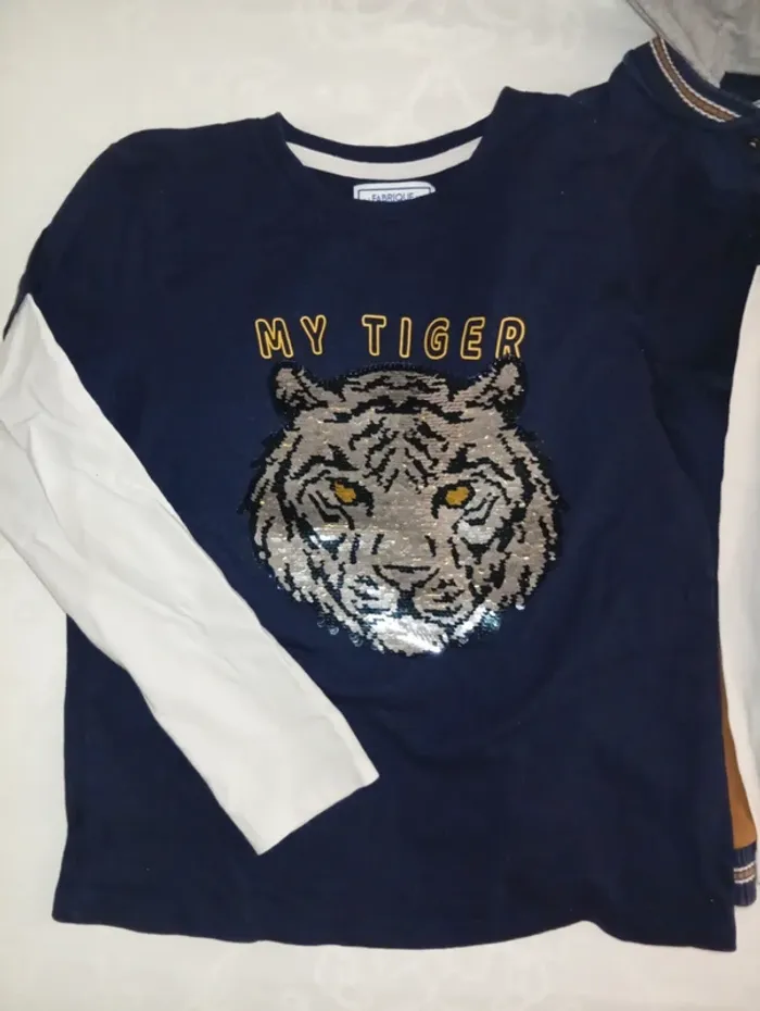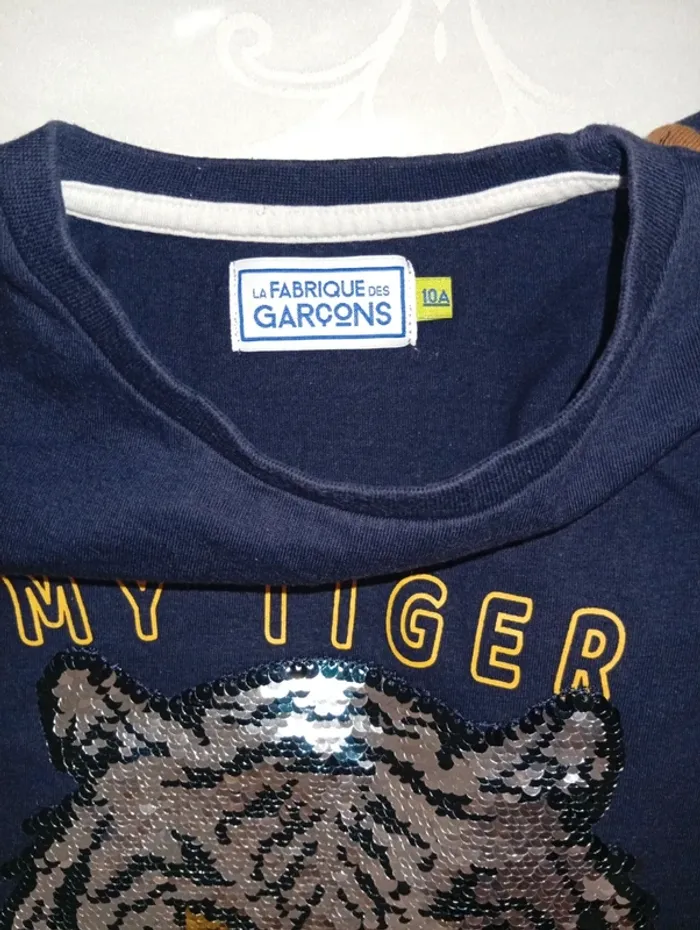 T shirt manches longues tigre en sequins réversibles , veste teddy a capuche amovible, taille 10 ans LA FABRIQUE DES GARCONS
