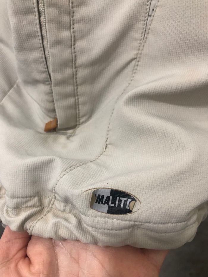 Cette veste moderne, confectionnée dans un matériau de qualité, présente de petits défauts (voir photos), mais ils sont peu visibles.
