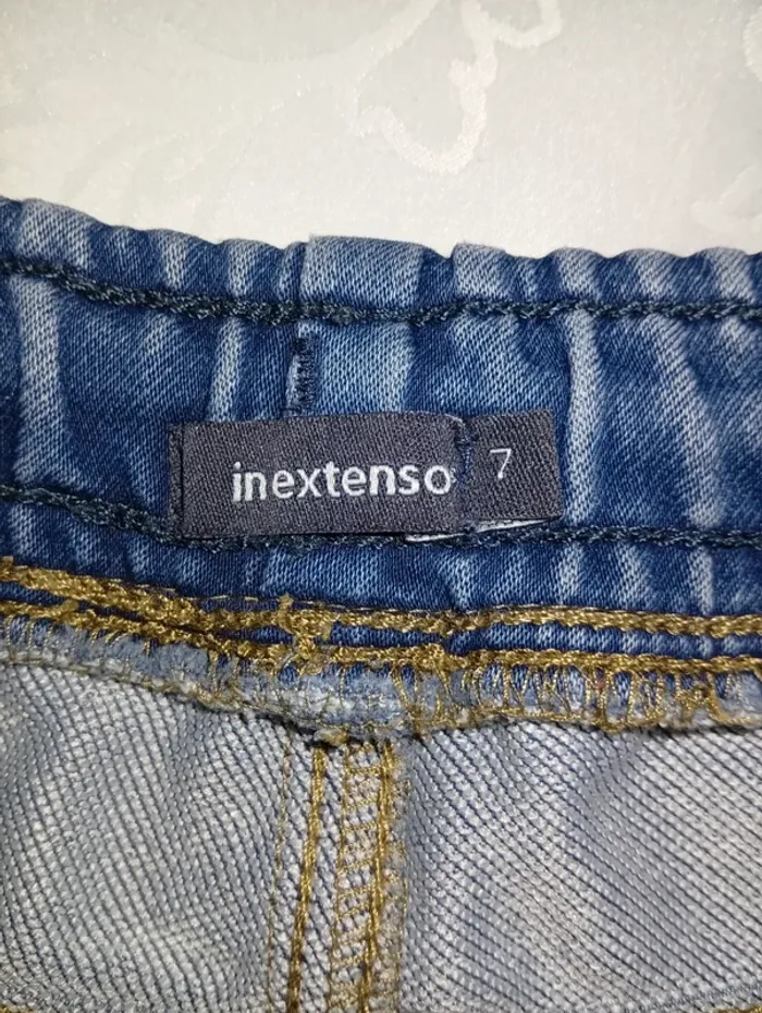 Jean cargos taille 7 ans INEXTESO, élastique et cordon a la taille . Petite trace de feutre je penses sur la cuisse mais a peine visible
