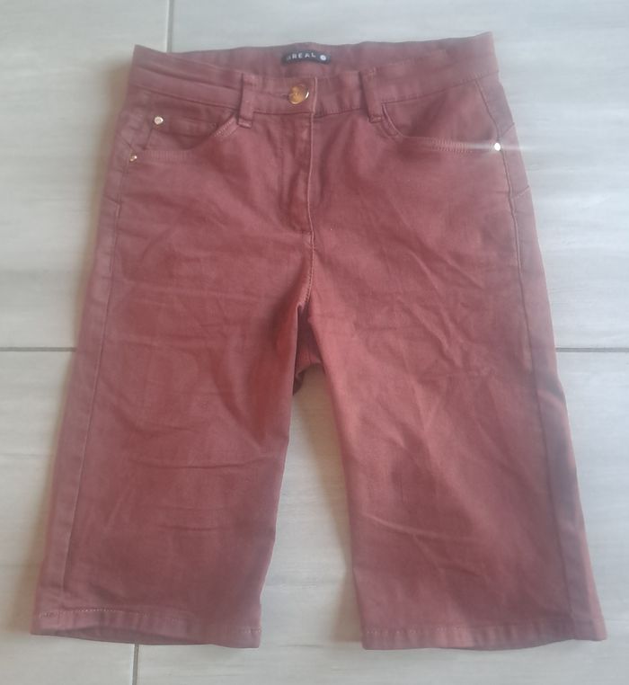 Bermuda effet jean Attache avec fermeture éclair et bouton Plusieurs poches Couleur chocolat 🍫 Neuf sans étiquette Taille 36 Marque Bréal