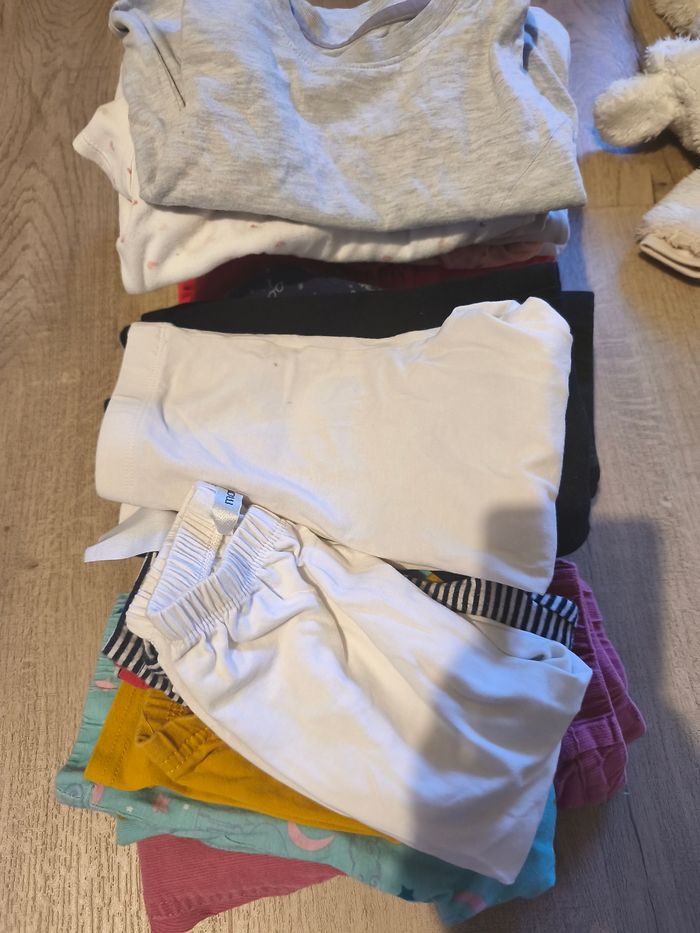 1 combi pilote 1 veste réversible 1 manteau à capuche 5 leggings 2 corsaires 2 pantalons velours 2 pantalons 1 ensemble jogging 1 body manches longues 1 body manches courtes 2 ts manches courtes 3 ts manches longues