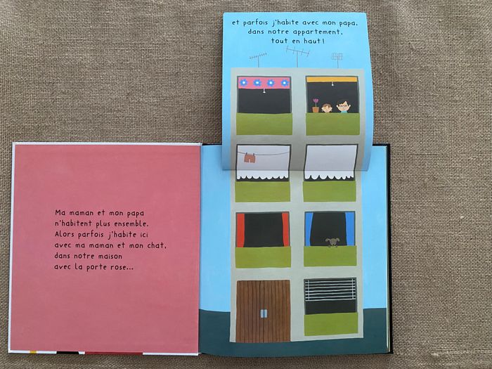 Chez Papa et chez Maman, mes deux maisons est un album jeunesse doux et rassurant qui aide les enfants à comprendre et vivre sereinement le fait d’avoir deux foyers. À travers une histoire simple et des illustrations chaleureuses, l’enfant découvre que l’amour et le sentiment de sécurité restent présents, quelle que soit la maison. A chaque page, un rabat-surprise ! Un livre idéal pour accompagner les jeunes enfants dans les changements familiaux et favoriser l’expression des émotions. gallimard3