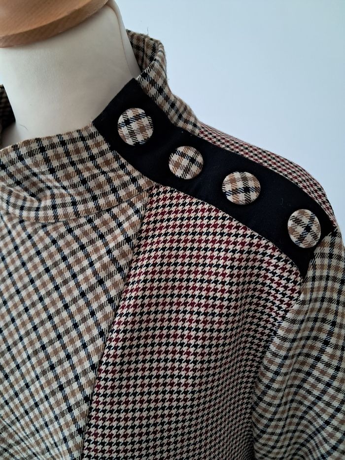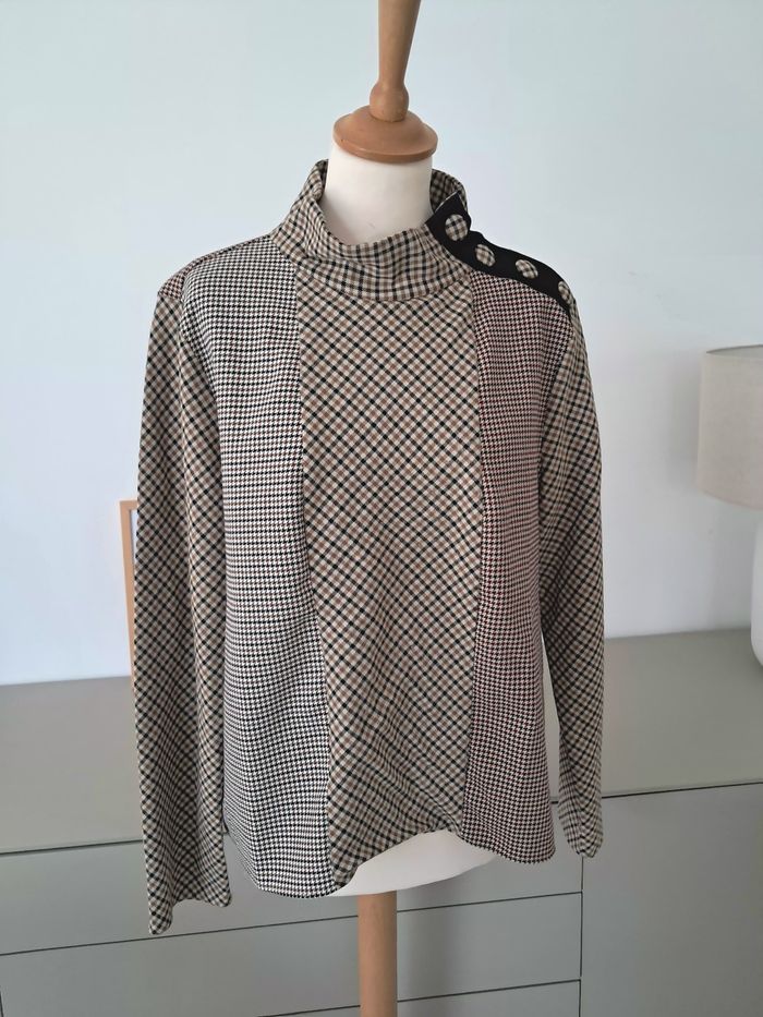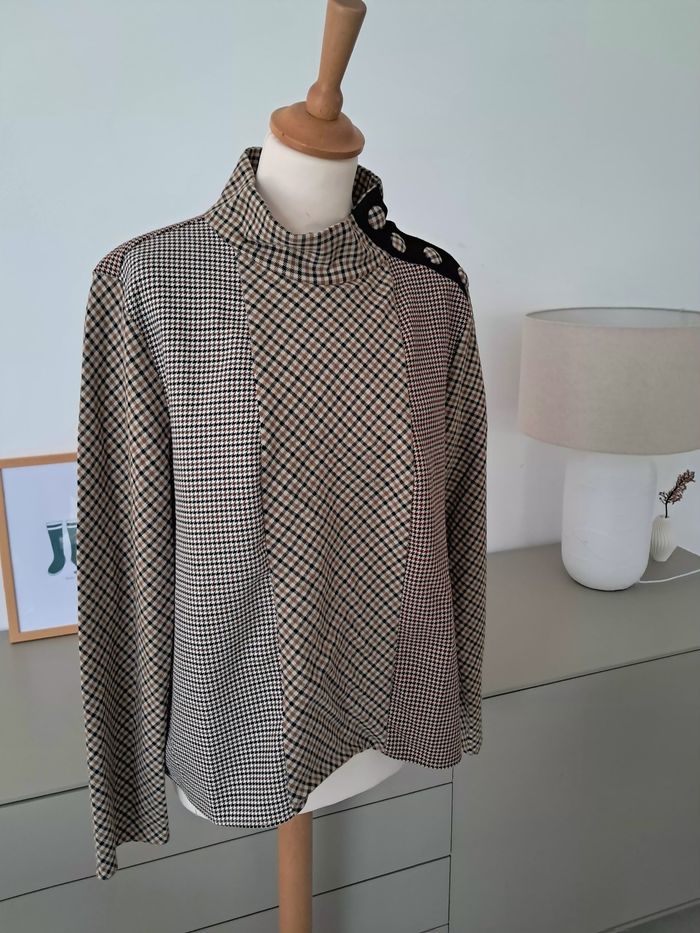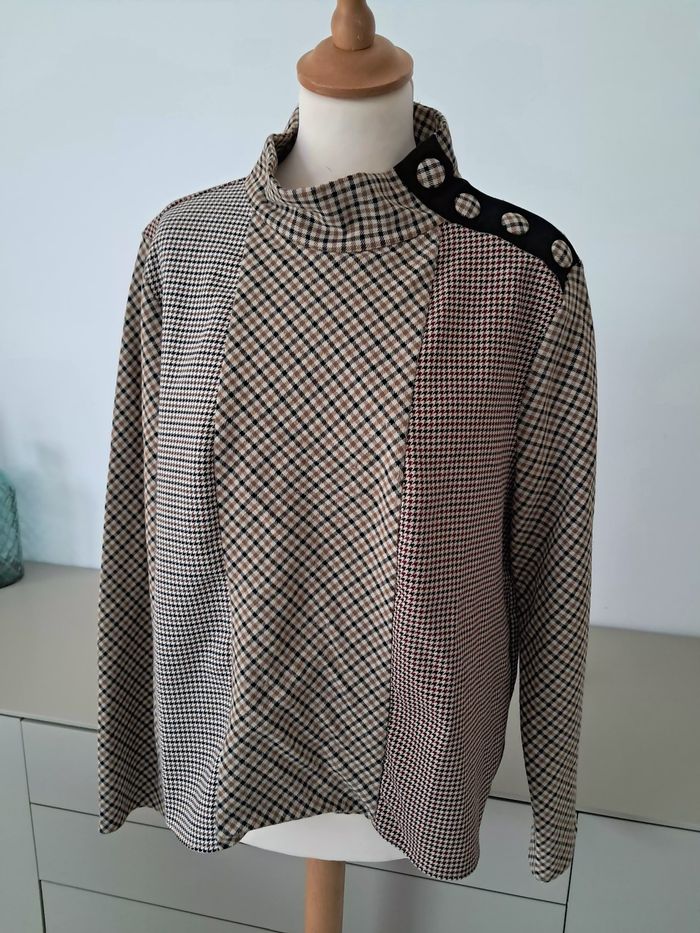 Blouse épaisse ou sweat léger à carreaux ton marron bordeaux. Boutons au col. Taille XL 42, marque Zara Parfait état