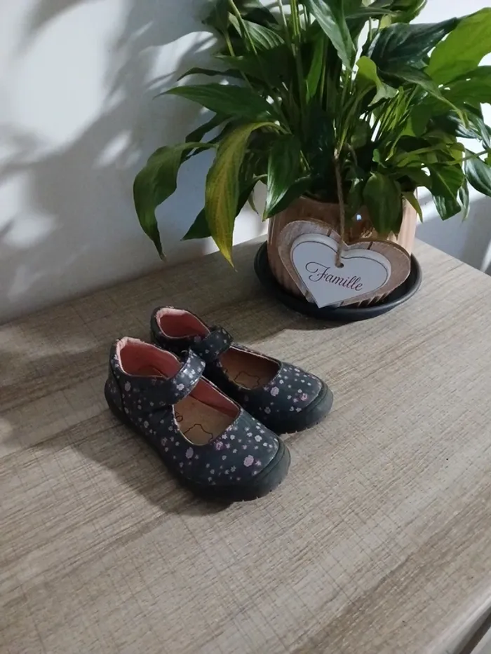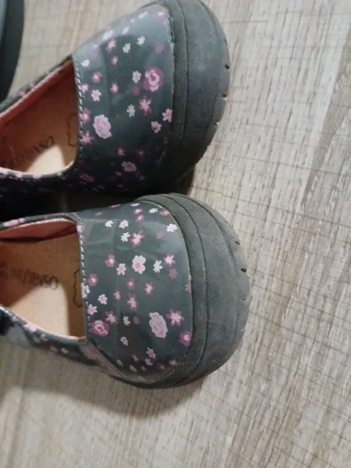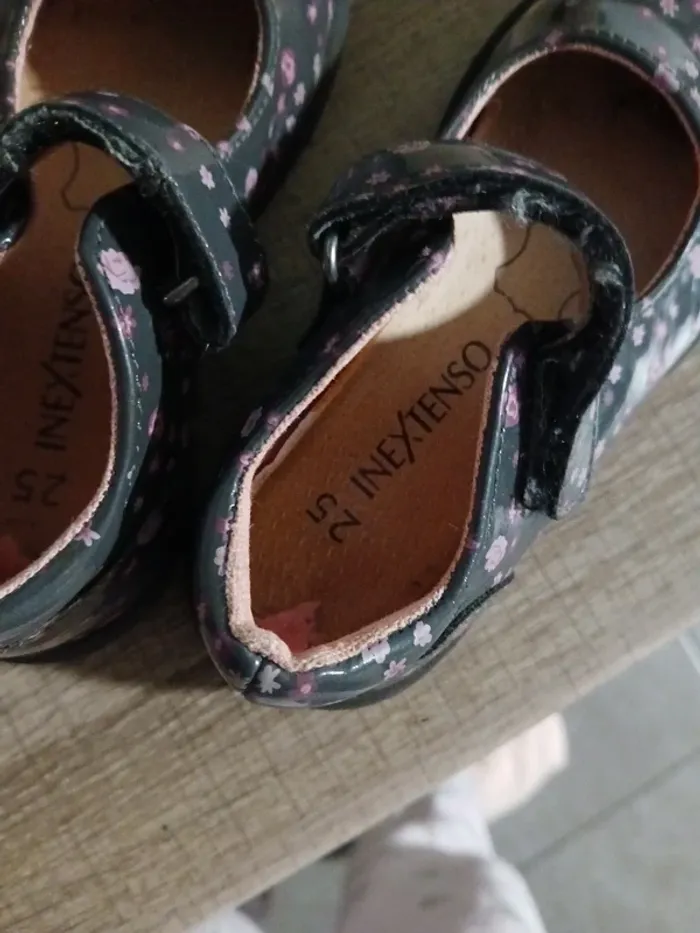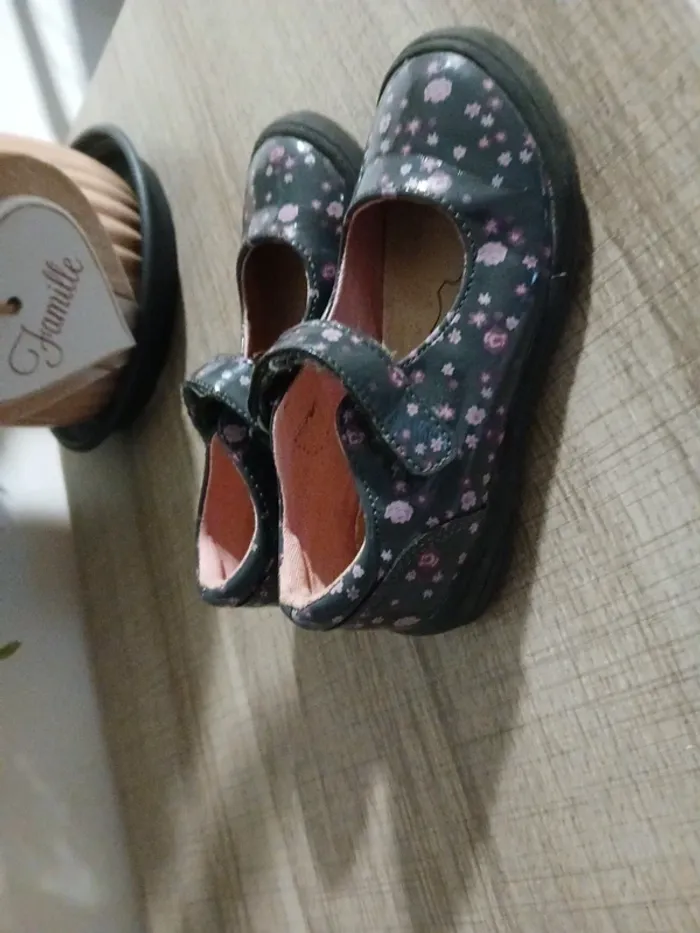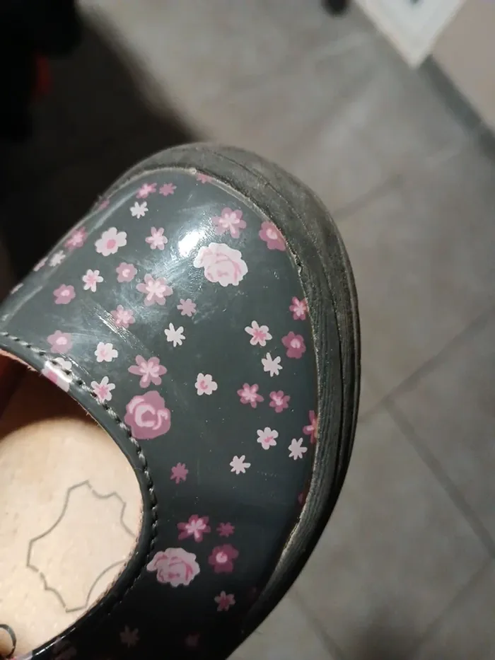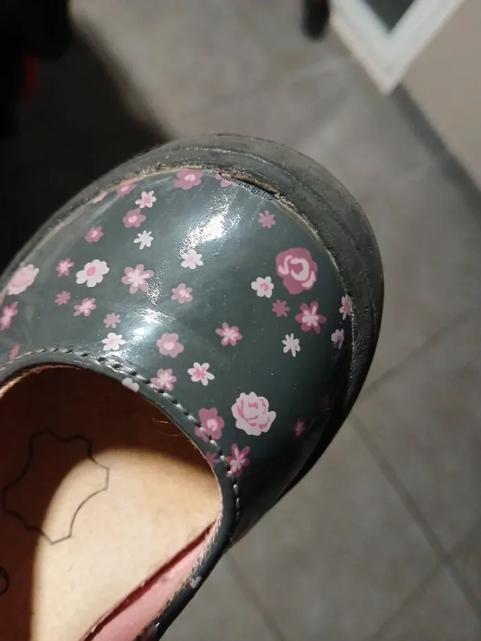 Je vends cette paire de chaussures à brides pour fille, marque In Extenso, de taille 25. Elles sont grises avec de jolis motifs floraux roses , parfaites pour le quotidien. Détails de l'article : Marque : In Extenso Pointure : 25 Style : Ballerines avec bride à scratch (facile à mettre seule) Conception : Bout en caoutchouc renforcé pour plus de protection. Couleur : Gris foncé / Motifs fleurs roses. État de l'objet : À noter : Les chaussures présentent des imperfections d'usage, notamment des frottements visibles sur le devant au niveau de la protection en caoutchouc (voir photo en gros plan). L'intérieur et la semelle restent en bon état pour une seconde vie.