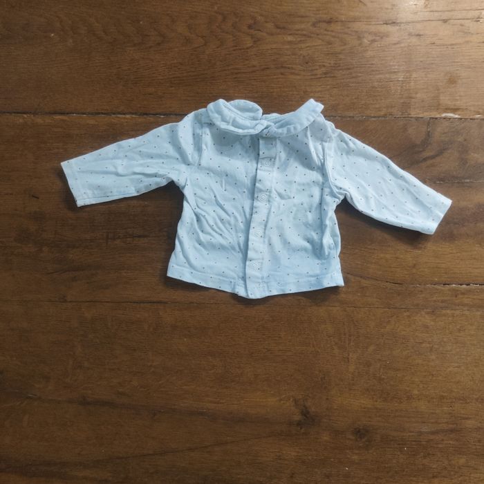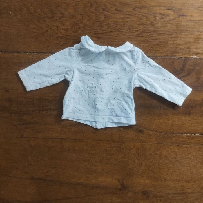 Tee-shirt col claudine fille 1 mois manches longues - photo numéro 1
