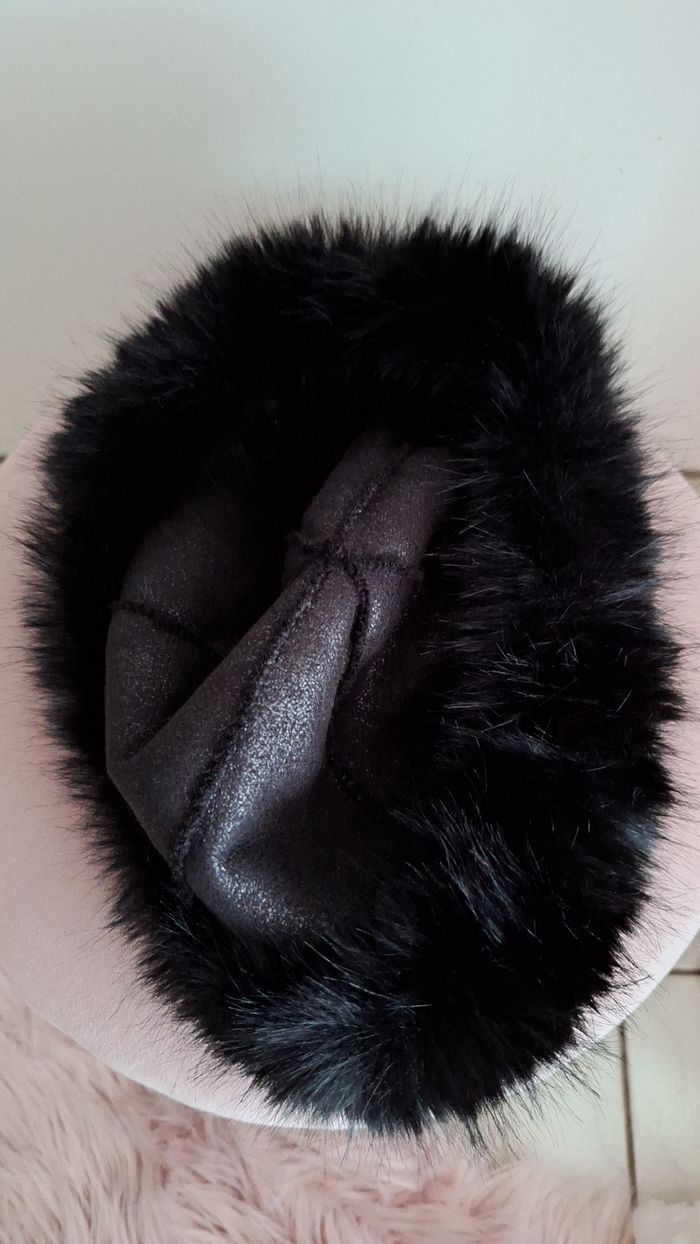 Superbe chapeau fausse fourrure polyester noir - photo numéro 2