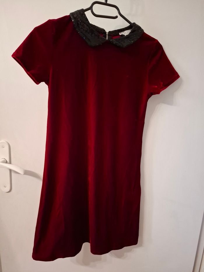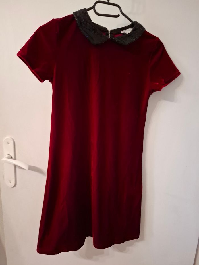 Robe fille taille 10/12 ans en tres bon etat velours et col sequin Longueur 79 cm