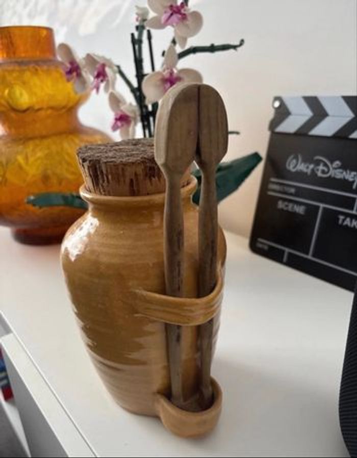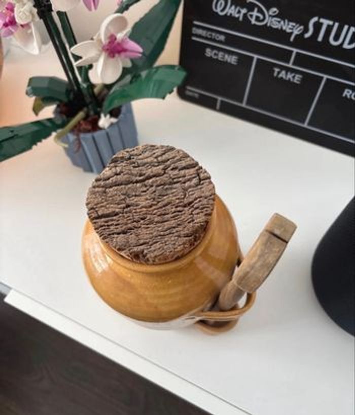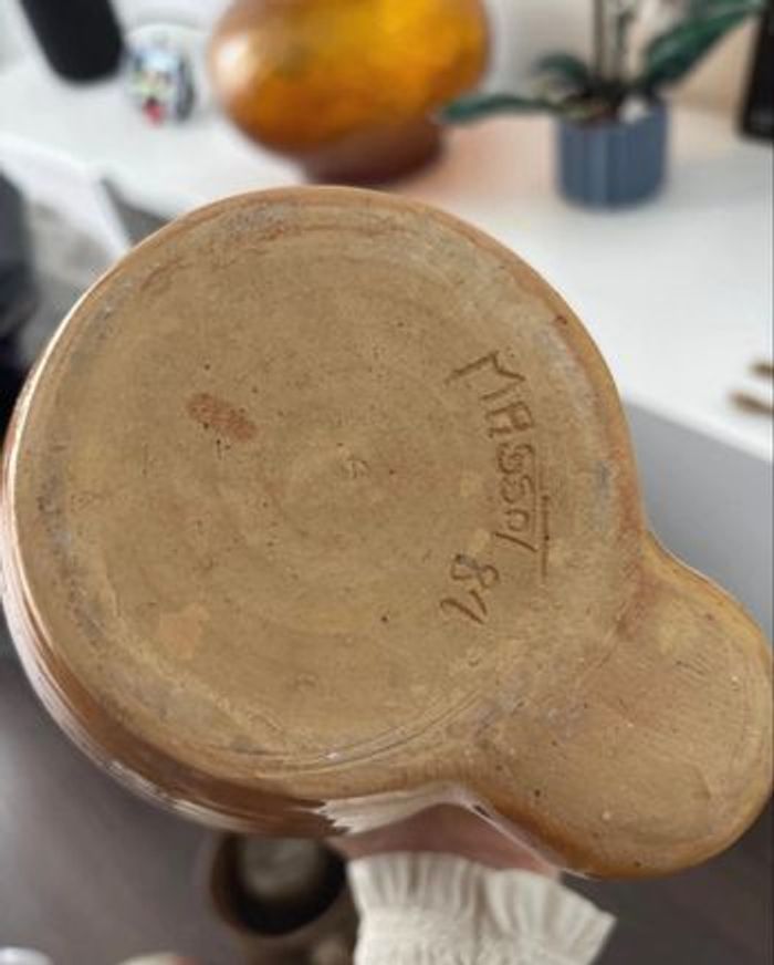 Pot à cornichons ocre en grès ancien - signé Massot 1981 - avec pince en bois - très bon état - photo numéro 8