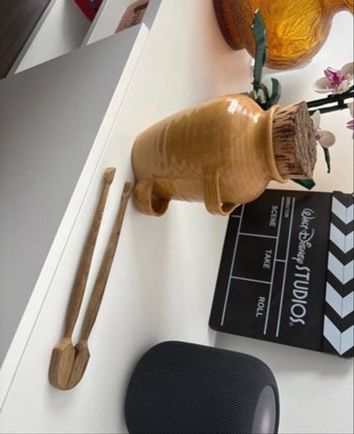 Pot à cornichons ocre en grès ancien - signé Massot 1981 - avec pince en bois - très bon état - photo numéro 5