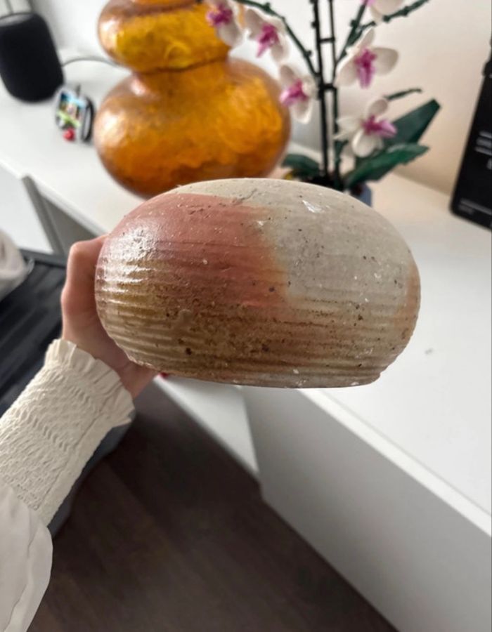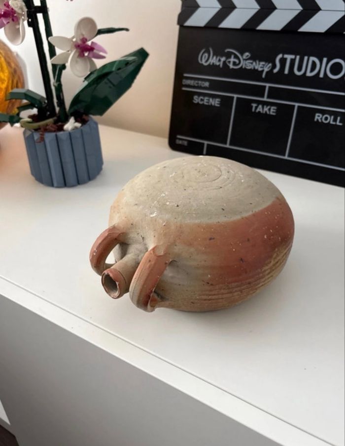 Ancienne gourde plate - gourde crapaud - bon état - patine authentique vintage Diamètre max : 22 cm Hauteur : 12 cm