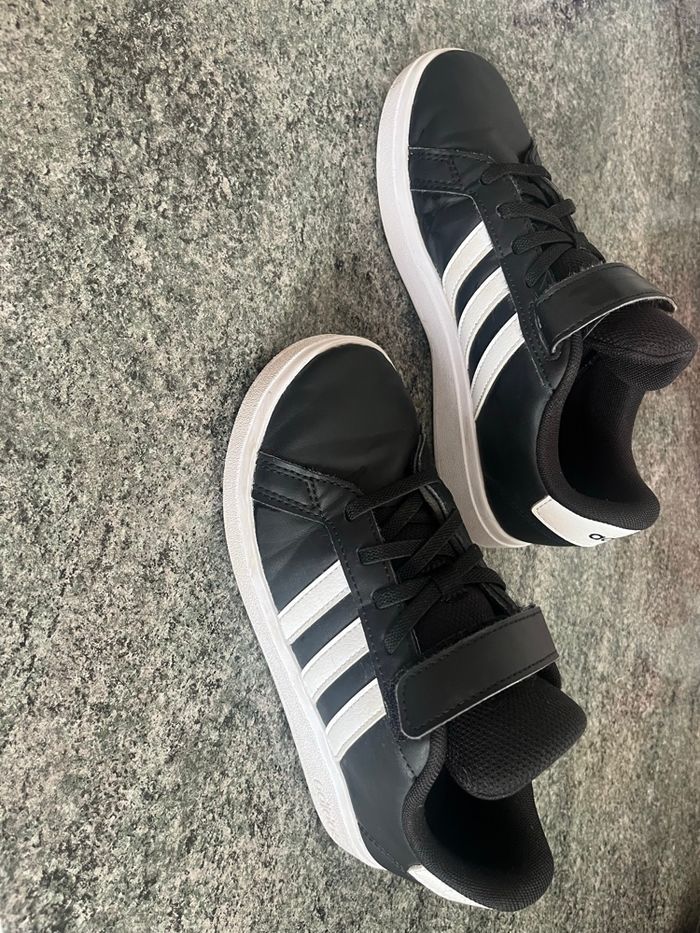 Bonjour, vends baskets Adidas noir. À scratch. Pointure 34 Porté 2 fois comme neuve