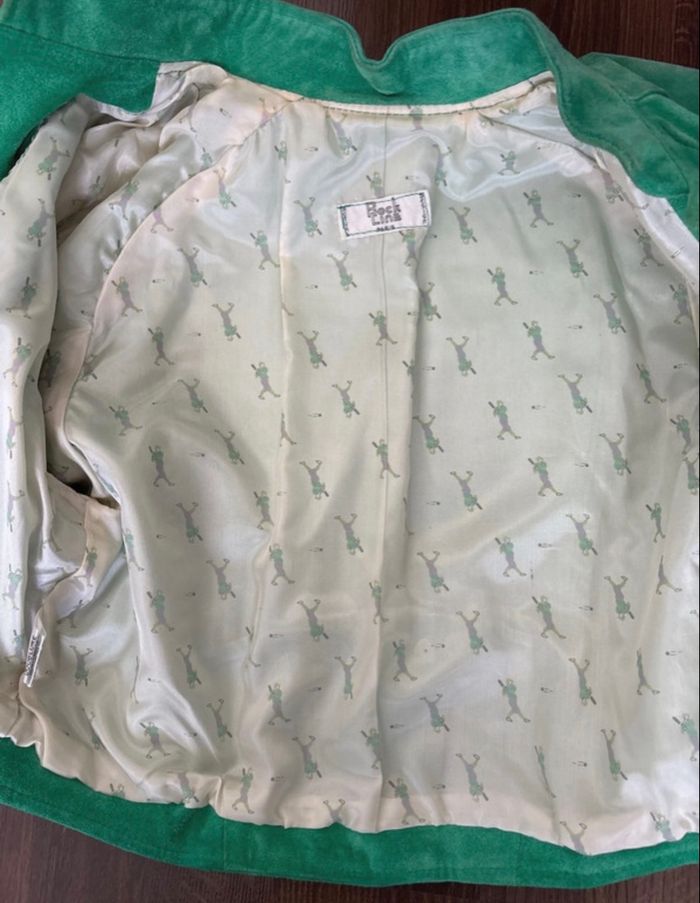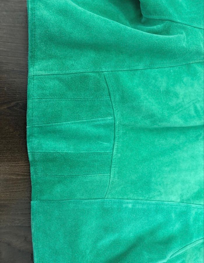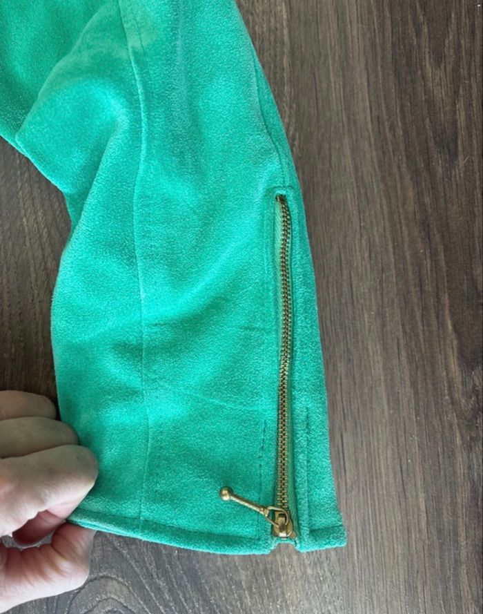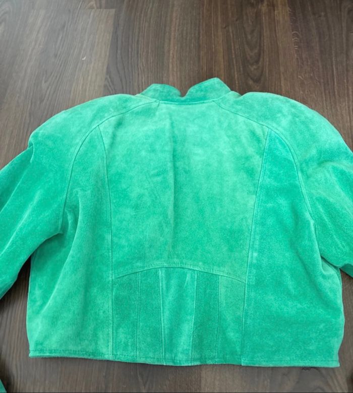 Veste courte en cuir vert vintage avec épaulettes année 80 Rock Line - très bon état - photo numéro 7