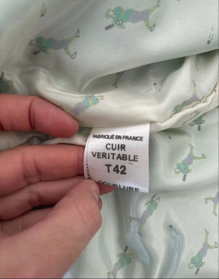 Veste courte en cuir vert vintage avec épaulettes année 80 Rock Line - très bon état - photo numéro 10