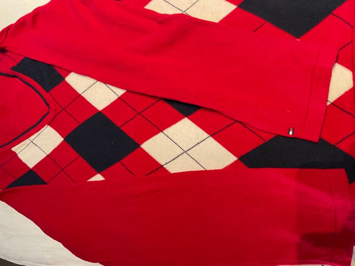 Pull col en V Rouge Damier Femme Tommy Hilfiger Taille L - photo numéro 1