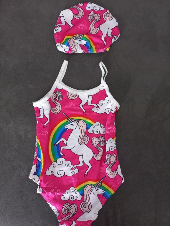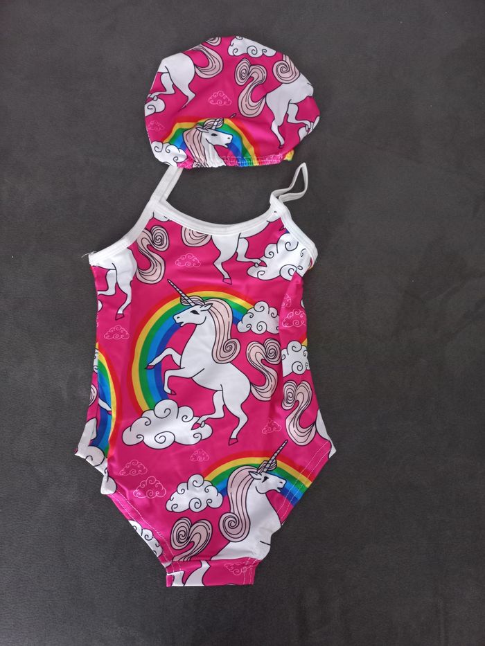 Maillot de bain 1 pièce fille licorne avec bonnet 4/5 ans - photo numéro 1