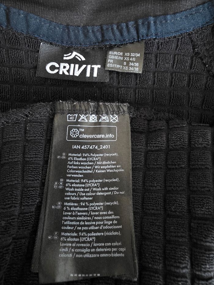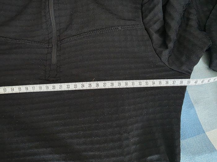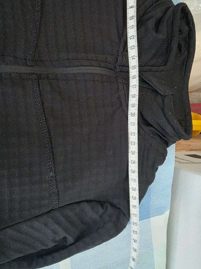 Tee-shirt, ML,noir, zippée col montant, chaud, en polyester & elasthanne, poignets ouvert pour passer le pouce,en très bon état, largeur d'épaule 32cm, largeur sous bras 39cm, longueur 61cm,marque Crivit =5€ - photo numéro 7