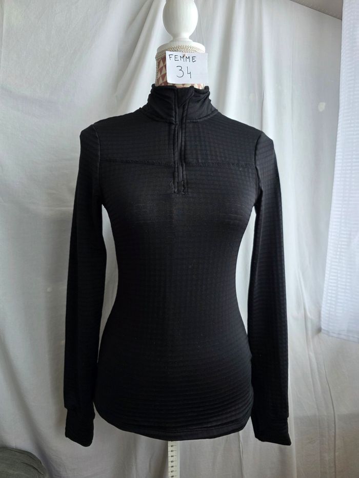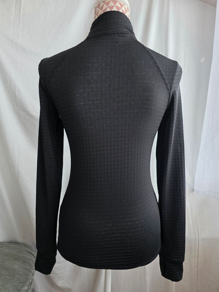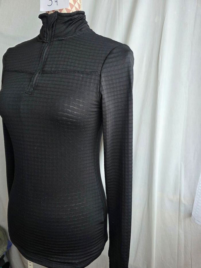 Tee-shirt, ML,noir, zippée col montant, chaud, en polyester & elasthanne, poignets ouvert pour passer le pouce,en très bon état, largeur d'épaule 32cm, largeur sous bras 39cm, longueur 61cm,marque Crivit =5€ - photo numéro 3