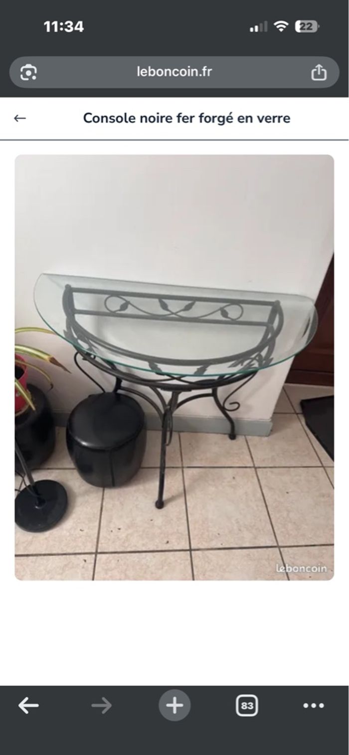 Console en verre et fer forgé