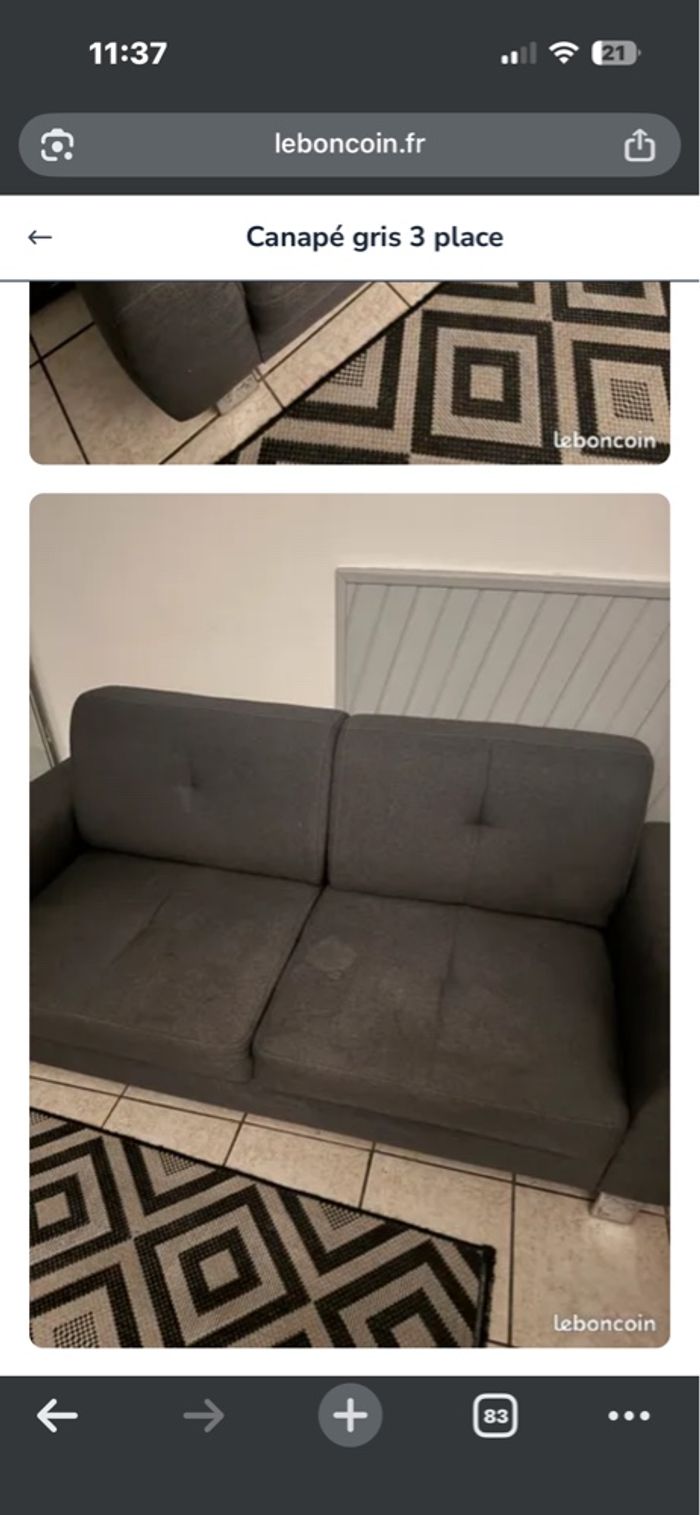 Fauteuil gris foncés à vend en urgence un bon coup de nettoyage à vapeur est nécessaire à venir récupérer sur place