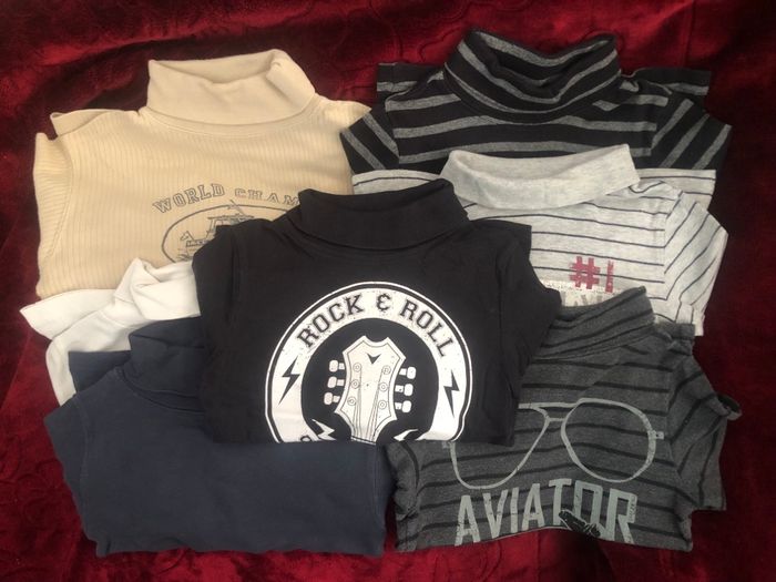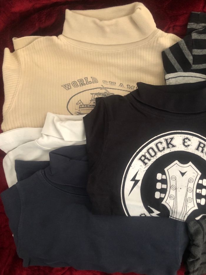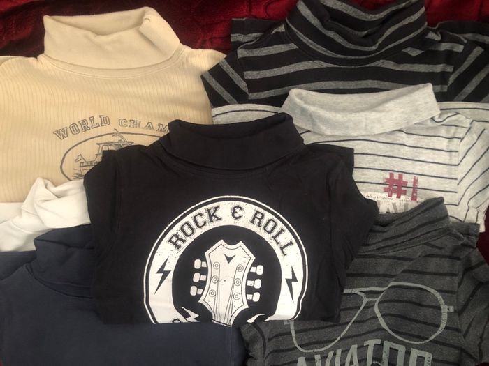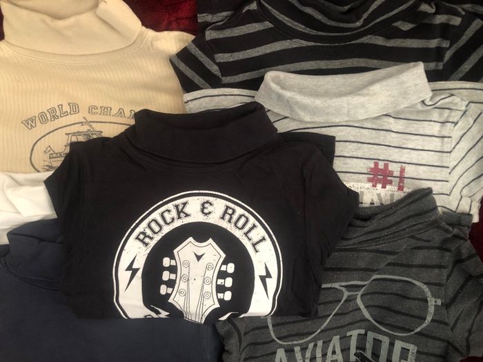 Lot de 7 t-shirts col roulé couleur variée 6 ans. Voir les annonces individuelles.