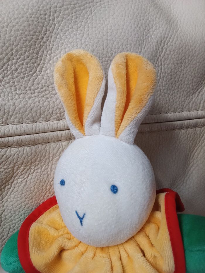 Doudou peluche lapin Moulin Roty vite un câlin multicolore d'occasion blanc vert bleu rouge - photo numéro 9