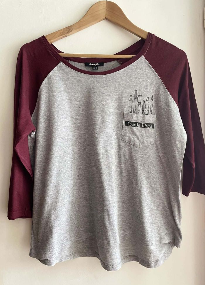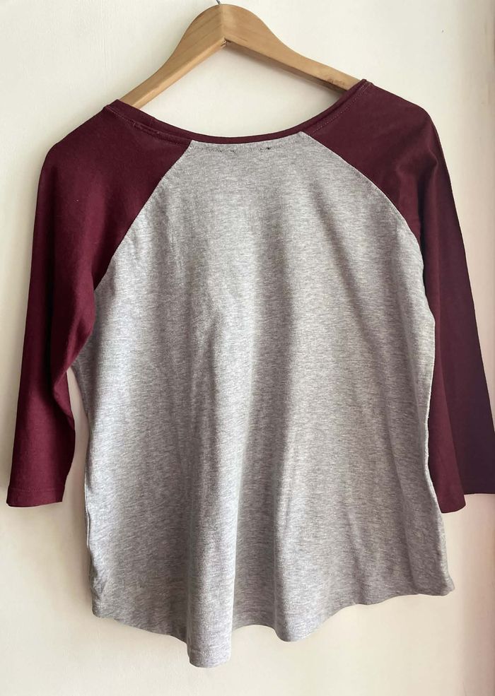 T shirt T M Marque "Jennyfer" En coton et polyester Gris clair et bordeaux Très bon état Envoie sous 48 h